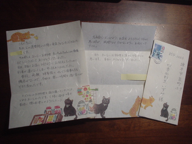書きたかったのですがご住所がわからず、